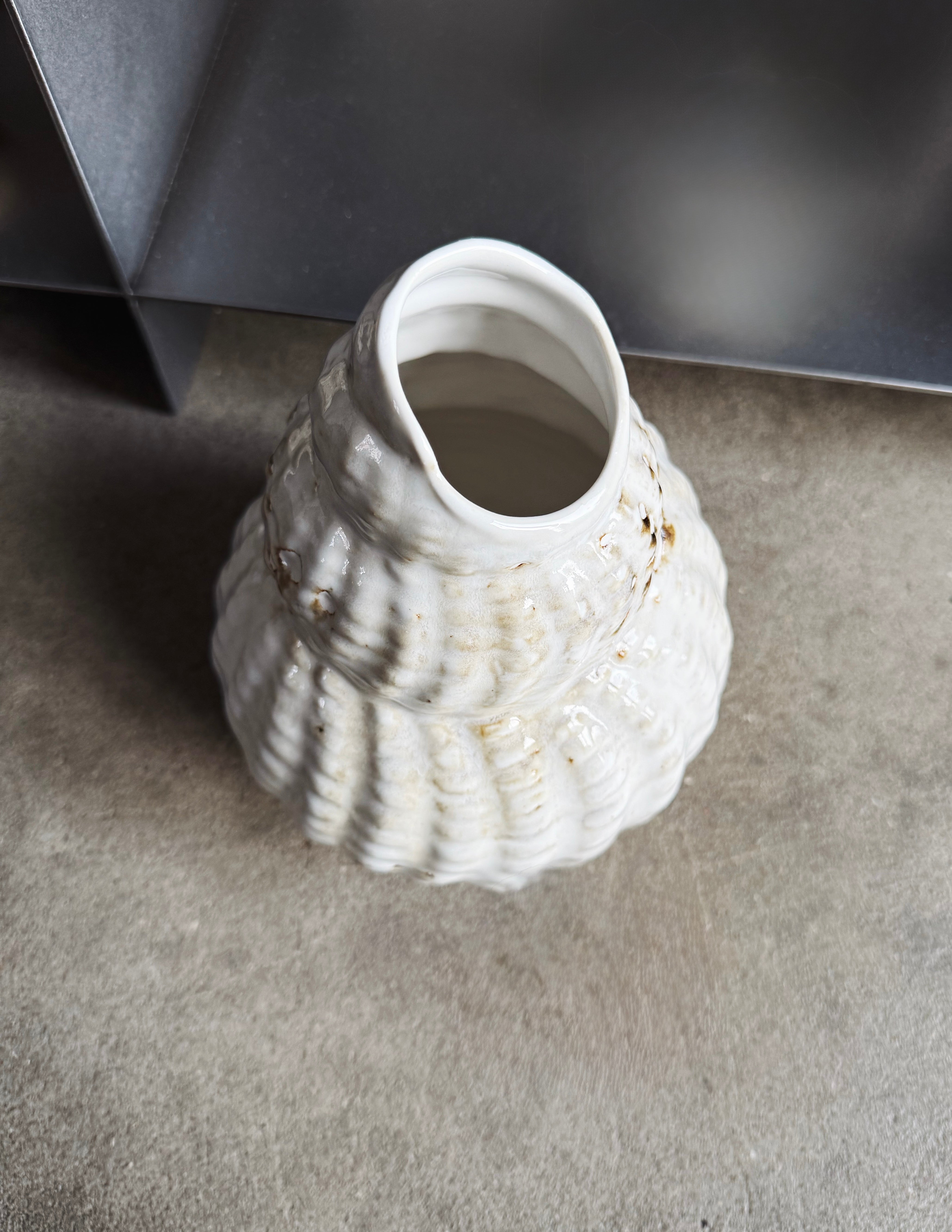 Shell Vase is a Danish, handcrafted design inspired by the organic movements of the sea. The form spirals upwards in a natural flow, where the structure highlights the fine details. Shell Vase combines design and Danish craftsmanship in an expression that embraces both function and artistic form. The vase can be part of various still lifes or stand as an individual element in the interior. The surface and silhouette accentuate the craftsmanship and give Shell Vase a calm presence in the room.